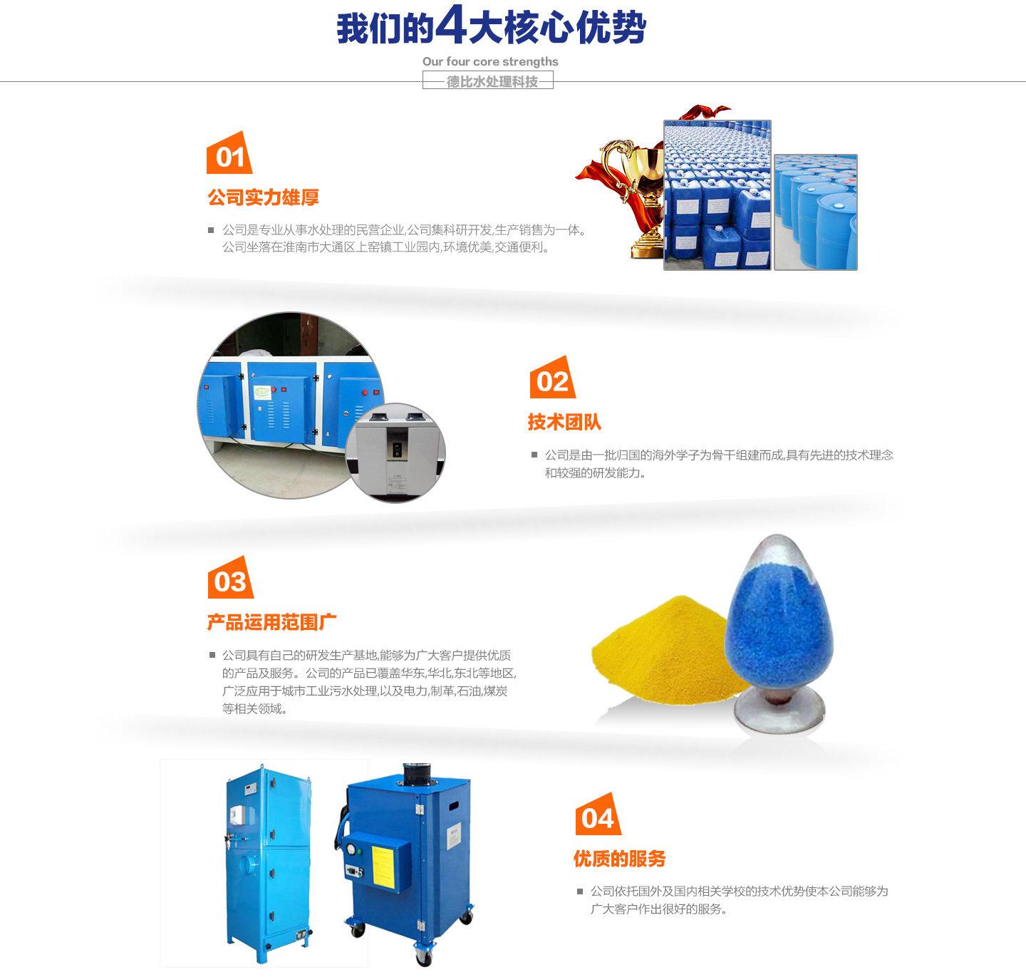 <p>淮南德比水處理科技有限公司是專業(yè)從事水處理的民營企業(yè),公司集科研開發(fā),生產(chǎn)銷售為一體。公司坐落在淮南市大通區(qū)上窯鎮(zhèn)工業(yè)園,環(huán)境優(yōu)美。公司占地面積16畝,固定投資3000萬元,完全建成后年產(chǎn)可達(dá)2萬噸固體鐵系及鋁系工業(yè)水處理藥劑,成為華東地區(qū)大的固體水處理藥劑生產(chǎn)廠家。 本公司是由一批歸國的海外學(xué)子為骨干組建而成,具有先進(jìn)的技術(shù)理念和較強的研發(fā)能力。公司依托國外及國內(nèi)相關(guān)學(xué)校的技術(shù)優(yōu)勢使本公司能夠為廣大客戶作出很好的服務(wù)。本公司具有自己的研發(fā)生產(chǎn)基地,能夠為廣大客戶提供產(chǎn)品及服務(wù)。公司的主打產(chǎn)品已覆蓋江浙滬,東北三省以及山西,青海等地區(qū),廣泛應(yīng)用于城市工業(yè)污水處理,以...